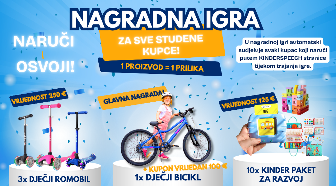 • 3. nagrada: 10× edukativni paket KinderSpeech (vrijednost svakog 300 €).